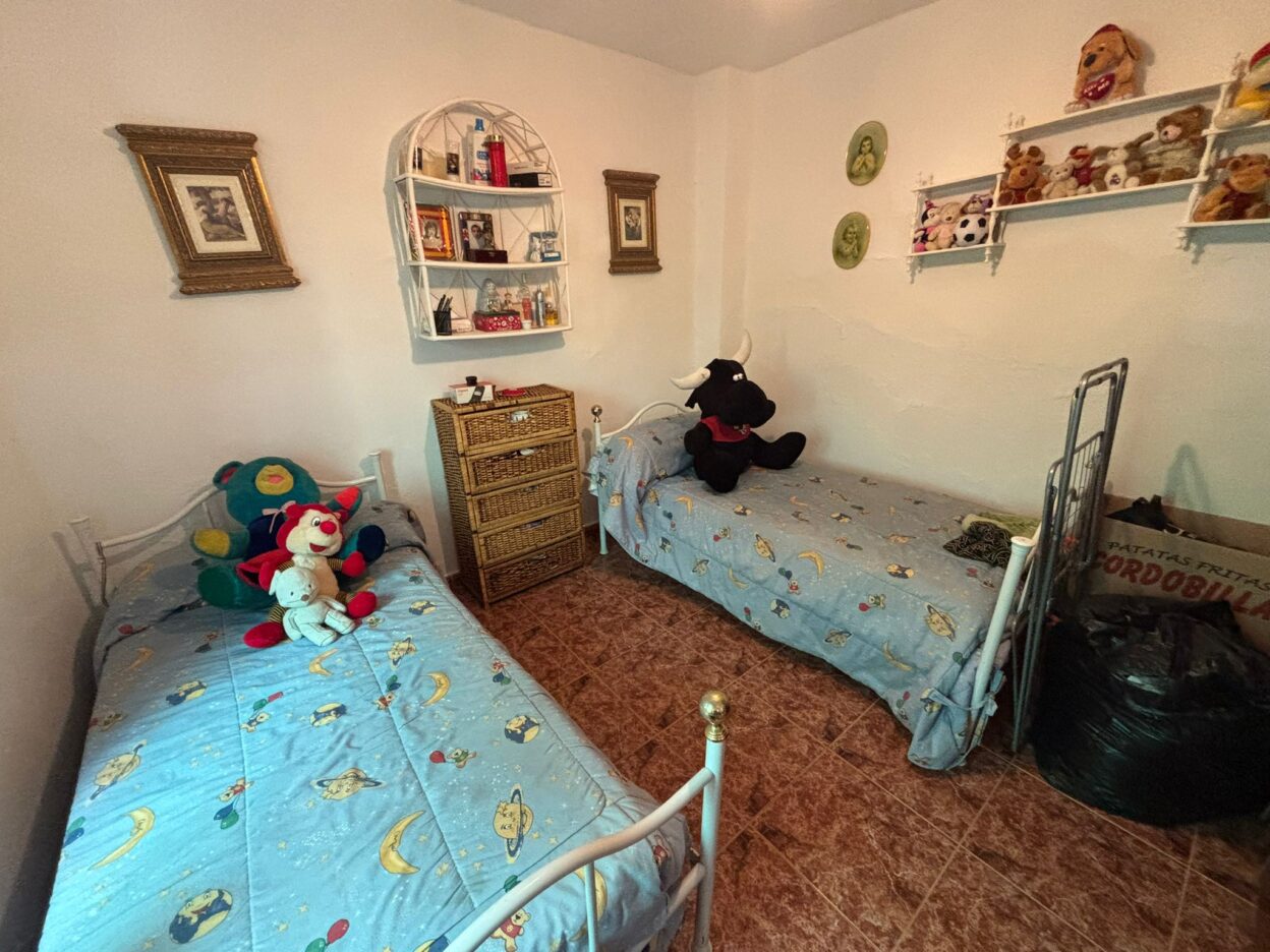 La planta baja está distribuida en 2 dormitorios, salón, salita, cocina, baño y patio. La planta alta consta de 4 dormitorios y aseo, en la que se podría hacer un apartamento, bien para alquilar o para algún familiar hijo, padres etc…..